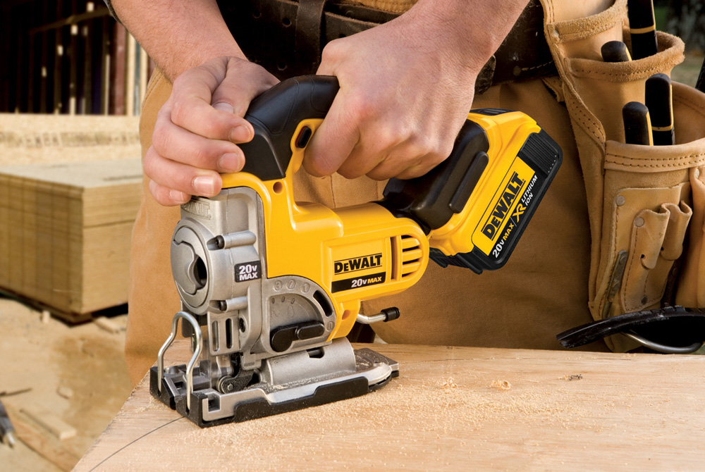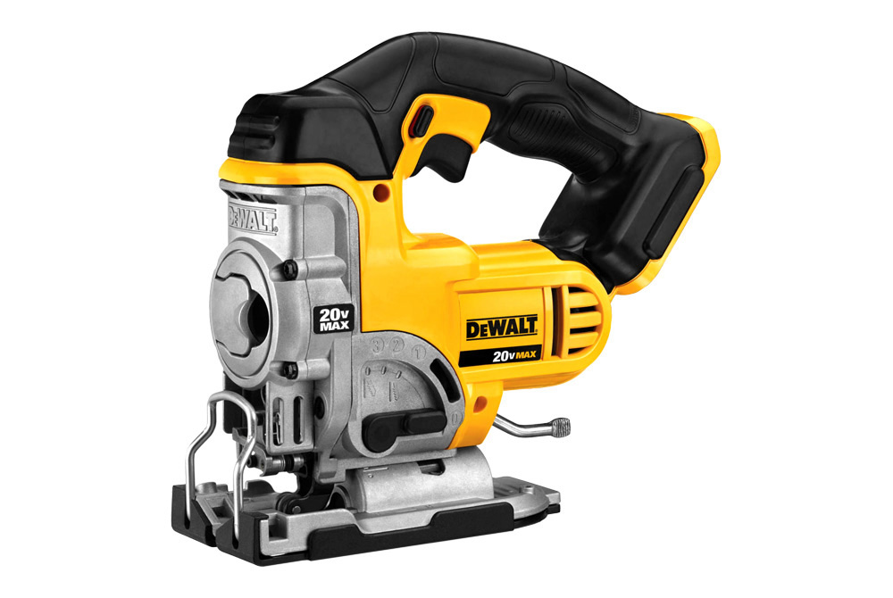 20V Max Lithium Ion Jig Saw Kit by DeWalt®. Includes: One DCB204: 20V Max XR Premium Li-Ion Battery (4.0 Ah), Fast Charger, jig saw blade, kit box.