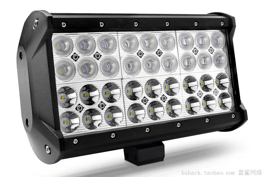 What makes the configuration of Quad Row Short light bars superior? They contain “pencil” type LEDs on the bottom two rows which focus their light into concentrated, far-reaching beams. The “flood” type upper LEDs serve to disburse their light to the sides. Once these units are turned on, their combination of side-to-side and distance illumination gives a driver an unparalleled wide swath of vision that eliminates dark spots and hidden dangers that other lights leave. Plus, LEDs are the most efficient and advanced form of lighting today. They emit their light from semiconductor chips mounted directly on a circuit board when current is applied, rather than in a vacuum the way OEM incandescent bulbs do. This offers far greater efficiency than incandescent bulbs because power is not lost by the production of heat. When you consider that LEDs typically generate 70 lumens per watt and incandescent lights generate 15, there’s no comparison. Even xenon bulbs known for their similarly clean, white light are far less efficient – generating only 20-24 lumens per watt at far greater temperatures.